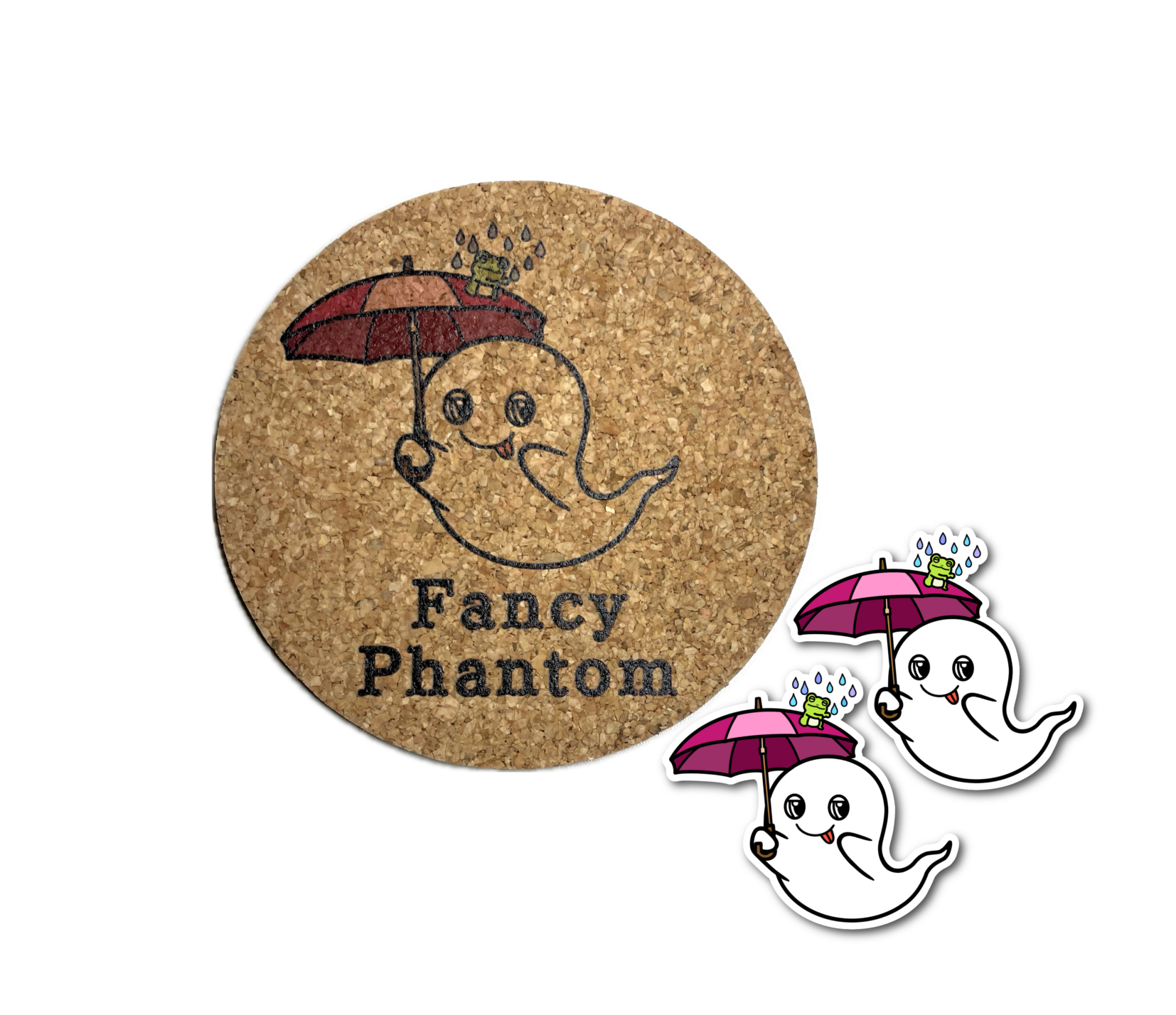 薄型コルクコースター(2mm) ミニステッカー2枚